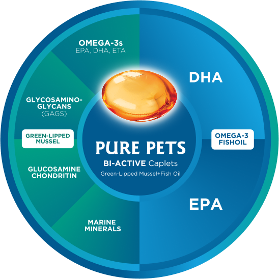 Natural ETA omega-3s plus glucosamine, chondroitin & MSM reduce swelling and pain so your dog moves comfortably again.